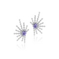 Tanza Love earrings feature a stunning design with a central tanzanite surrounded by radiant diamond accents, creating a captivating sunburst effect. The intricate arrangement of diamonds and the deep violet hue of the tanzanite evoke a sense of elegance and modern glamour.
