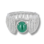A striking diamond cuff bracelet crowned with a vivid oval aventurine centerpiece, framed by pavé-set diamonds—Oval Symphony is a bold harmony of brilliance and refined elegance.