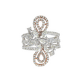The Rose Gold Bows ring showcases an intricate design of sparkling diamonds intertwined with elegant rose gold accents, resembling delicate bows. This exquisite piece combines sophistication and charm, perfect for adding a graceful touch to any ensemble.